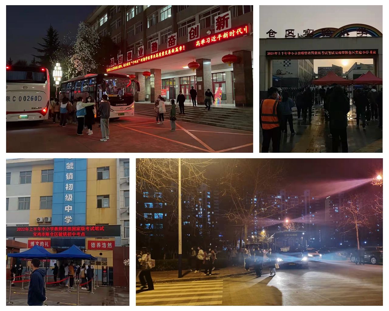 3月12日,陕西省2022年上半年中小学教师资格考试笔试如期举行,应陕西省教育厅、教育考试院及宝鸡市应对新冠肺炎疫情工作领导小组要求,我校实行“点对点”闭环接送,全力保障三千余名学生顺利参加考试。