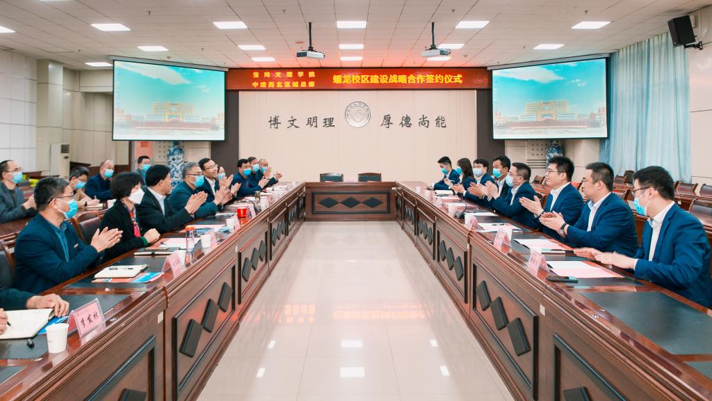 王瑾感谢我校对中建丝路的认可和支持。他表示,中建西北区域总部(中建丝路建设投资有限公司)作为中国建筑的直属区域总部,负责引领协调管理中国建筑各工程局在西北地区的业务,为西北区域经济社会发展提供综合优质服务。宝鸡文理学院作为宝鸡地区唯一的本科高校,为陕西和西部经济社会发展作出了突出贡献。在学校建设高水平大学的关键时期,中建西北区域总部(中建丝路建设投资有限公司)将秉承“诚信、创新、超越、共赢”的企业精神,全方位支持学校科技创新园区暨新校区建设,以实际行动为学校加快推进“双一流”建设,奋力谱写学校发展新篇章贡献中建力量。