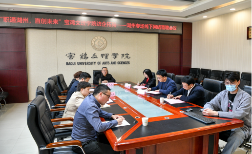 栾宏对参加此次活动的湖州市领导和企业代表表示欢迎和感谢。他指出,继校地双方建立“城市定制班”“共建就业基地”“就业创业工作站”人才合作机制后,在疫情防控常态化背景下,又创新推出线下网络直聘会招聘模式,深挖就业资源,将吸引更多的文理学子走出陕西,在湖州建功立业,积极服务长三角一体化国家战略。希望双方以此次活动为契机,整合资源,从人员培训、科研服务、实习基地、学生就业等多个方面充分发挥各自优势,开展全方位、形式多样的交流与合作,不断开阔视野境界、拓展合作领域、深化合作内容、提升合作层次、实现互利共赢。