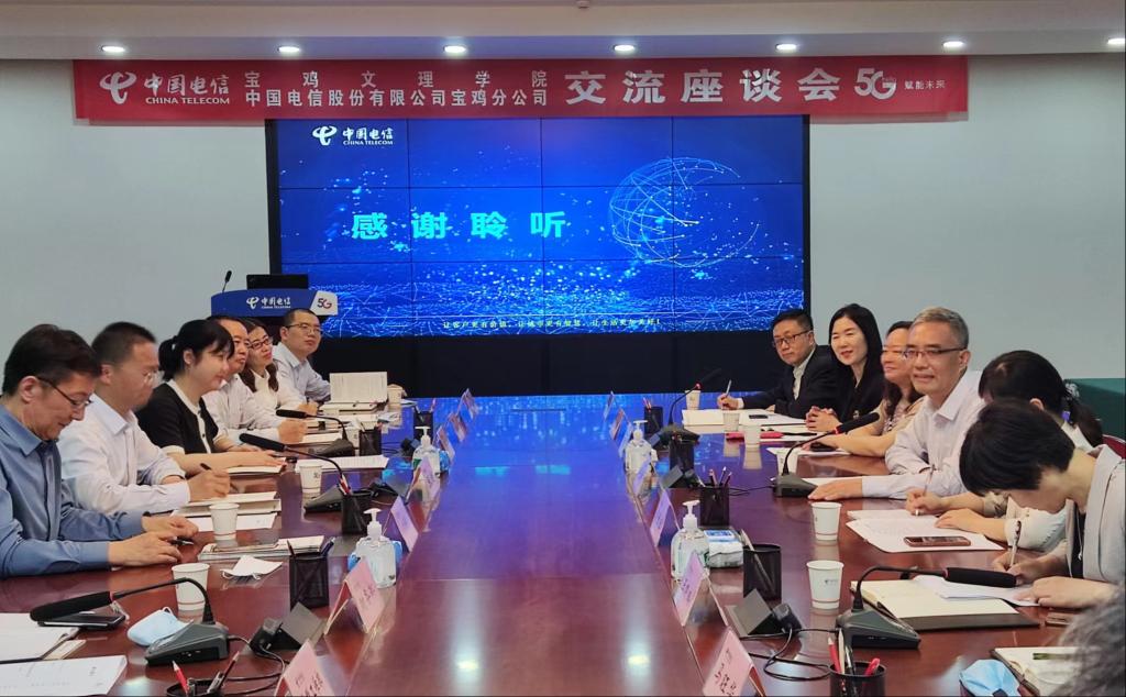 座谈会由中国电信股份有限公司宝鸡分公司党委委员、副总经理马莉主持。与会人员围绕共建研发平台、校园人才招聘和建立常态化合作机制进行了交流与讨论,初步达成了合作意向。