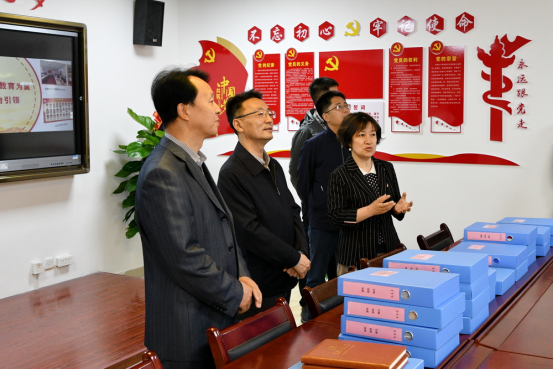 评估验收组一行实地走访了样板支部的党建活动室,现场查看了成果展示资料,详细了解了样板支部建设情况。
