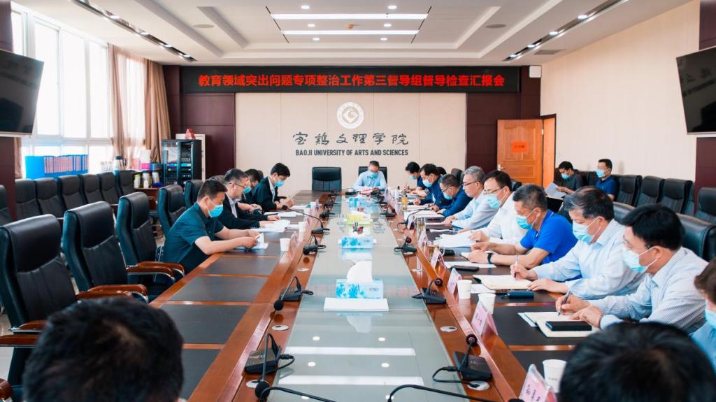 5月23日,省教育厅教师处处长王彬武带领省教育领域突出问题专项整治工作第三督导组第二小组一行4人来校实地督导检查专项整治工作进展情况。全体校领导以及专项整治工作任务牵头部门主要负责人参加了汇报会。