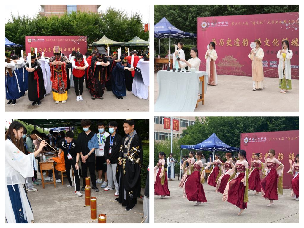本次活动由校团委主办、历史文化与旅游学院团总支承办,是我校第三十二届“博文杯”大学生校园文化艺术节展示活动之一,旨在以同学们喜闻乐见的形式将中华优秀传统文化通过历史再现的方式展现给广大青年学生,教育引导广大青年学生继承与发扬中华优秀传统文化。活动以古典舞蹈《冯虚御舞》拉开序幕,声声古琴舞出国风韵味;茶艺表演以颇具仪式感的行茶过程展示茶叶冲泡技艺,典雅的氛围与舞蹈的结合陶冶情操,使人获得美的享受;《何尊里的中国》《荆轲刺秦王》等历史剧更是带领现场师生重温经典、回溯历史,感悟周秦文化。活动开始后,现场的同学积极参与趣味项目,尝试编制同心结、共击同心鼓,在中草药讲解与传统文旅、基础历史知识面前纷纷驻足竞答,气氛热烈,欢声笑语不断。