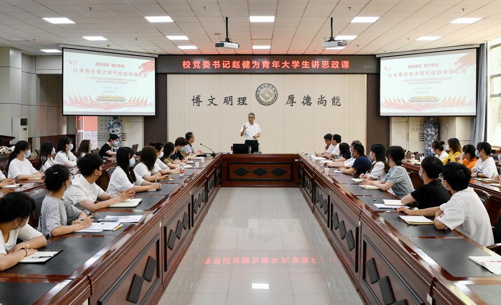 6月2日下午,校党委书记赵健在高新校区甘棠厅为我校青年大学生讲授思政课。