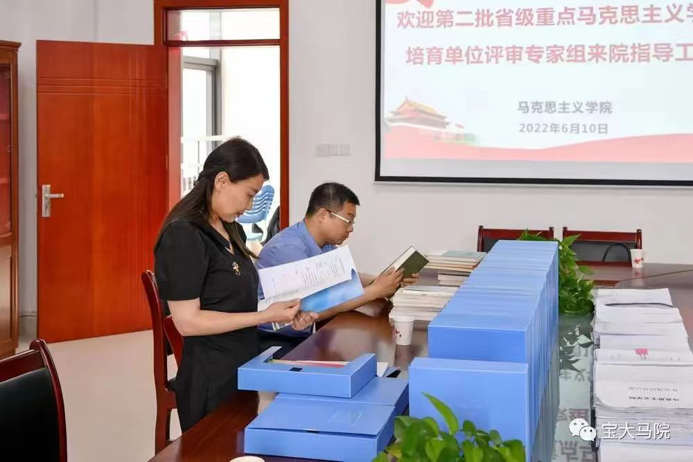 查阅资料阶段,评审专家组对马克思主义学院迎检资料进行了全方位检查。