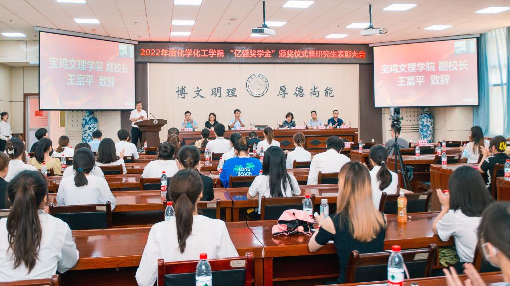 7月1日下午,化学化工学院在高新校区甘棠厅举行了2022年度“亿盛奖学金”颁奖仪式暨研究生表彰大会。副校长王富平出席会议并讲话。会议由化学化工学院副院长冯海涛主持。