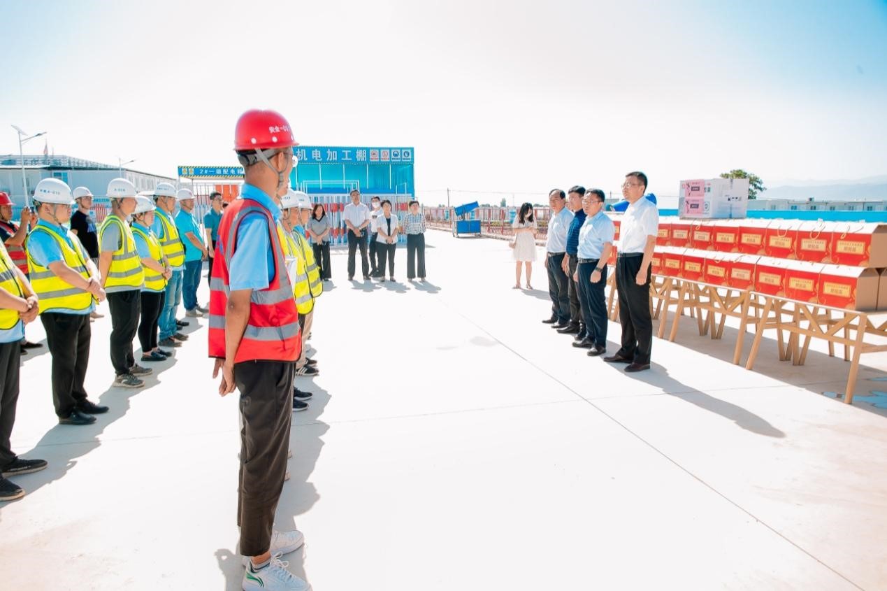 郭霄鹏代表学校对蟠龙校区全体建设人员表示亲切慰问,并感谢宝鸡市有关单位对我校蟠龙校区建设的关心支持。他要求,施工单位要严格按照工作规范进行施工,保证工程顺利进行,同时要根据天气情况合理安排施工人员工作时间;监理单位要切实履行监管责任,既要监管工程质量和进度,更要监管工程安全和施工人员身心健康;蟠龙校区建设指挥部要加强与施工单位和监理单位的密切配合,强化统筹协调,加强施工现场管理,尤其要做好高温天气防护和疫情防控工作,确保工程质量、工程进度和施工安全。