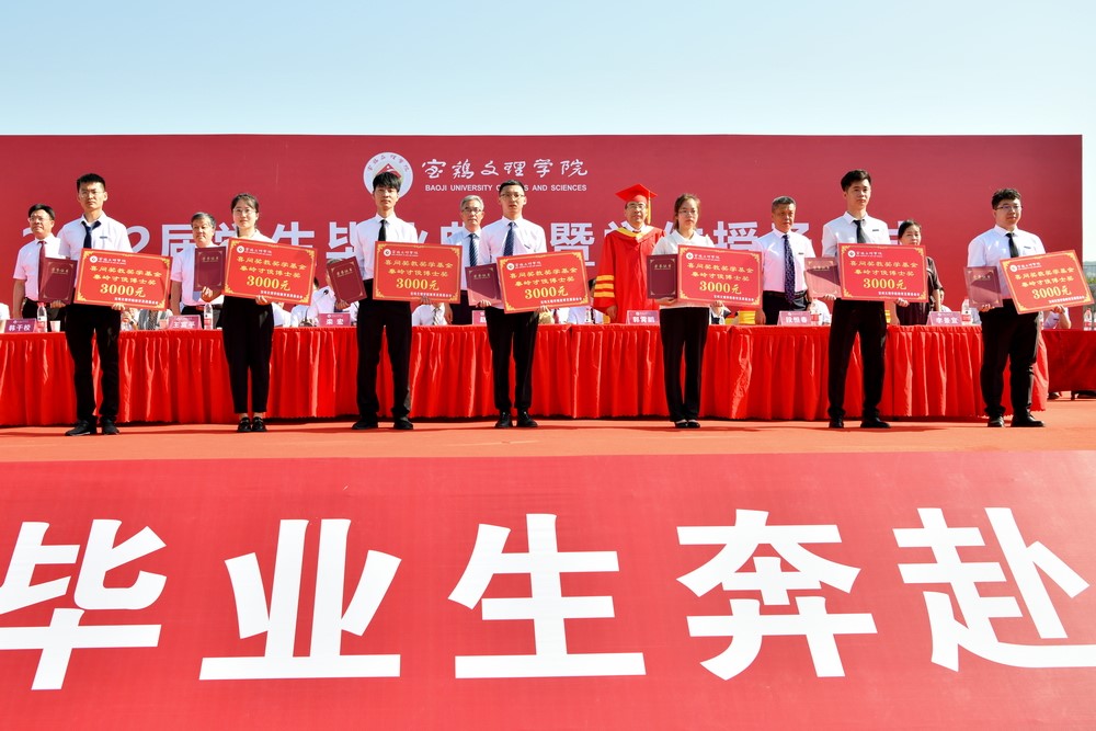 7月7日上午,在我校2022届学生毕业典礼暨学位授予仪式上,校党委书记赵健,校长郭霄鹏,党委副书记、纪委书记、监察专员段恒春,副校长王富平、李景宜、韩干校为荣获“喜问奖教奖学基金‘秦岭才俊’博士奖、硕士奖”代表颁发荣誉证书、奖金。党委副书记栾宏主持奖学金发放仪式。