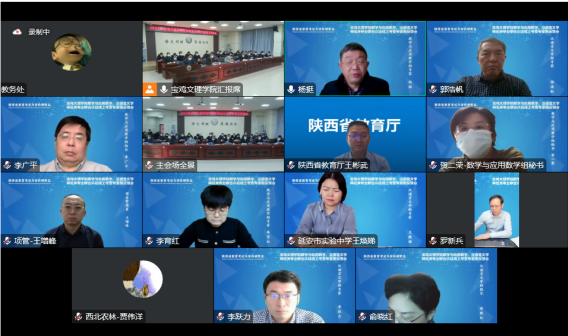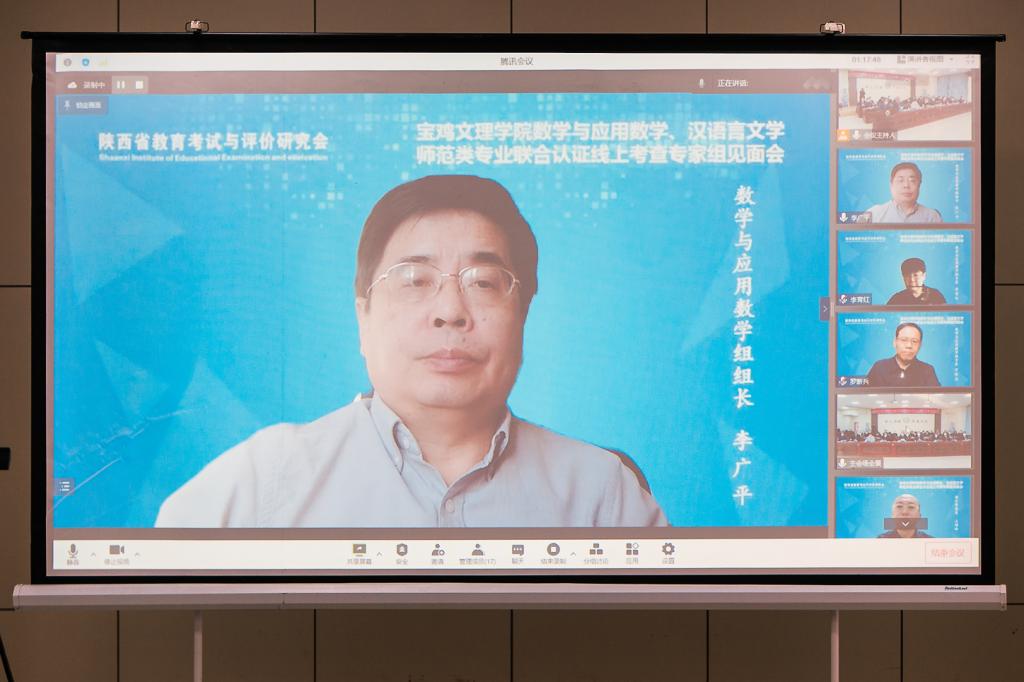 19日上午,专家组线上考查见面会在高新校区甘棠厅举行。专家组全体成员、陕西省教育厅教师工作处处长王彬武、陕西省教育考试与评价研究会副会长许广玺、学校全体校领导、相关职能部门负责人、文学与新闻传播学院和数学与信息科学学院党政领导、马克思主义学院院长、教育学院院长、汉语言文学和数学与应用数学专业负责人参加了见面会。会议由李广平教授主持。
