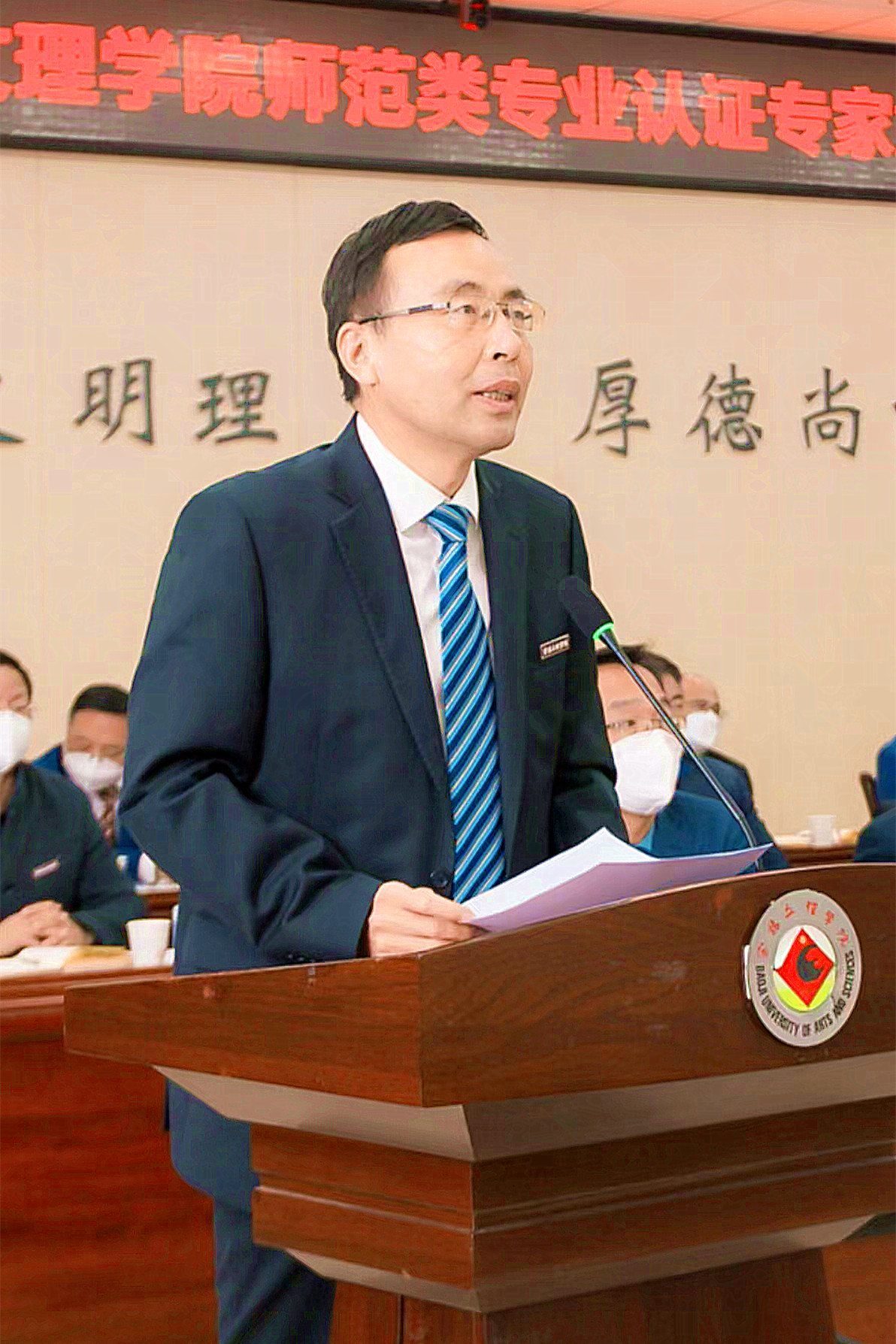 校长郭霄鹏致欢迎辞,对联合认证专家组为我校师范类专业建设把脉问诊表示感谢,并简要介绍了学校的基本情况和师范类专业建设情况。他指出,办学六十多年来,我校始终坚持教师教育办学特色,以办好师范类专业为首要职责,为社会培养了一大批优秀人才。师范类专业认证是学校持续深化教师教育改革,凝练教师教育特色,打造教师教育品牌,提升人才培养质量的一次重要机遇。希望各位专家多提宝贵意见,为我校师范类专业建设提供指导和帮助。学校将积极配合、全力支持各位专家开展工作,确保认证工作圆满成功,取得实效。