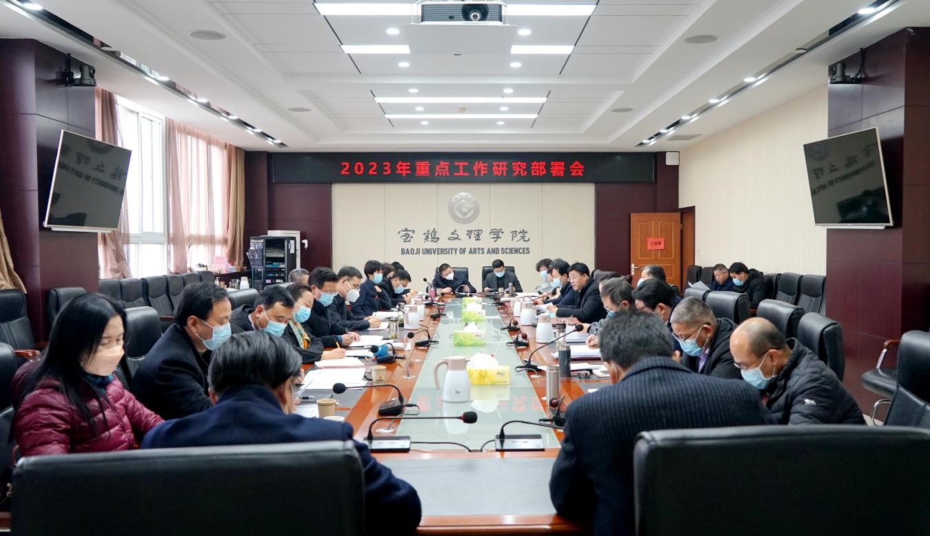 郭霄鹏指出,2023年是全面贯彻党的二十大精神的开局之年,是实施“十四五”规划承前启后的关键一年,是为建设高水平大学奠定基础的重要一年,我们要重点抓好十个方面的工作,推动学校事业迈上新台阶。一是加强党建和思想政治工作,深入学习贯彻党的二十大精神,提升干部队伍干事创业能力和基层党建工作质量,推进思政课程和课程思政建设,以高水平党建促进学校事业高质量发展。二是全力做好大学更名工作,对照工作方案要求,完善相关材料,切实做好迎接专家组进校核查各项准备工作。三是推进蟠龙校区建设,积极筹措建设资金,加快办理相关手续,抓好人员组织和施工管理,全面推进一期项目建设。四是以本科教学审核评估工作为抓手,进一步深入推进“十四五”人才培养各项工作落地落实,强化优质教学资源建设,加强学生教育管理,促进本科和研究生教育内涵式高质量发展。五是加强学科建设,持续推进一流学科和学科群建设,全力做好硕士学位点增列等工作。六是加强科学研究工作,聚焦国家、陕西省和宝鸡市发展战略,对标对表找差距、补短板,深入推进“十四五”科研工作任务落实落地,促进科技成果转化,全面推动科研工作提质增效。七是加强师资队伍建设,坚定不移实施人才强校战略,进一步完善人事、人才工作制度,切实做好人才引进和培养工作,驰而不息强化师德师风建设。八是做好六十五周年校庆和对外合作交流工作,以庆祝建校六十五周年为契机,进一步加强校地、校企合作,推进国际交流与合作,提高学校服务社会能力和国际化办学水平。九是持续推进管理体制机制改革,优化机构设置,深化人事管理制度改革,强化绩效考评,不断提升学校治理能力和水平。十是抓好后勤保障、民生工程和稳定安全工作,不断改善师生工作、学习和生活条件,确保校园稳定安全,进一步提升师生获得感和幸福感。