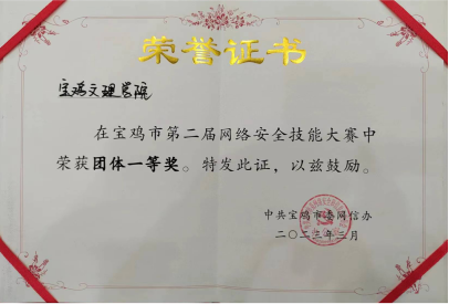 3月2日,宝鸡市第二届网络安全技能大赛在宝鸡市行政中心一号楼C2会议室举行。我校网络与信息技术管理处杨建卫教授、计算机学院学生闫佳轩组成代表队参加比赛,经过激烈的角逐,我校代表队获团体赛一等奖。