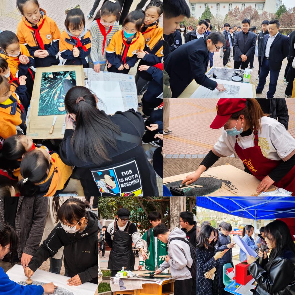 本次活动由党委组织部、党委宣传部主办,美术学院承办,中国银行宝鸡分行协办。美术学院优秀校友、中国银行宝鸡分行副行长李刚,学校相关职能部门负责人,石鼓校区各二级学院党委书记、院长、教师和学生代表参加了开幕式。数千名师生在展览区驻足观赏,来自石鼓校区各学院、文理附属学校及幼儿园学生1000多人参与了党的二十大知识竞答及拓印体验活动。(美术学院党委 文/陈蕾 图/王鹏震、梁馨匀 审核/田富平)