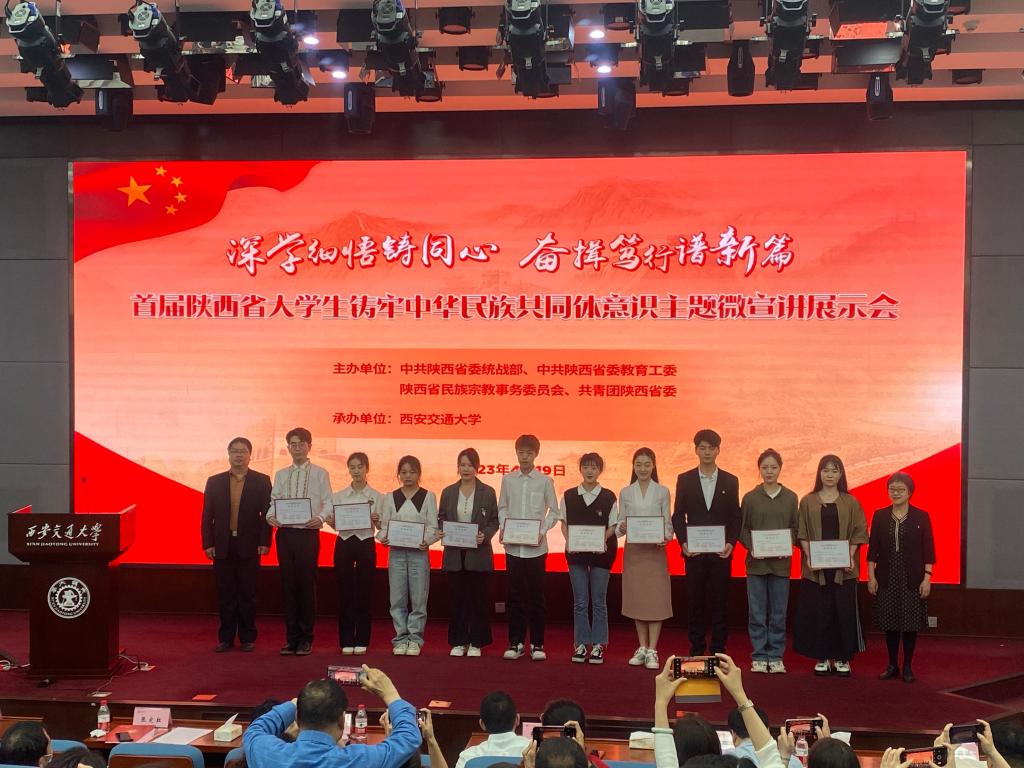 首届陕西省大学生铸牢中华民族共同体意识主题微宣讲比赛由中共陕西省委统战部、中共陕西省委教育工委、陕西省民族宗教事务委员会、共青团陕西省委主办,西安交通大学承办。共有来自西安交通大学、陕西师范大学、长安大学、西北大学、西安石油大学等十余所高校近百名同学参赛。我校于2022年8月下旬开展了相关选拔比赛,共推荐了两项作品参加决赛。