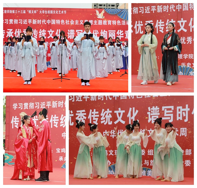 本次活动旨在为深入开展学习贯彻习近平新时代中国特色社会主义思想主题教育,落实“学思想、强党性、重实践、建新功”的总要求,是我校第三十三届“博文杯”大学生校园文化艺术节展示活动之一,由宝鸡文理学院党委组织部、党委宣传部和校团委主办,历史文化与旅游学院党委承办。通过传统文化大讲堂系列讲座、歌唱舞蹈、诗歌朗诵、舞台剧等诸多形式,陶冶当代青年的道德情操,提升当代青年对祖国和民族的认同感、自豪感,增强文化自信,延续中华文化脉络,在互动体验中交流“古今之美”。