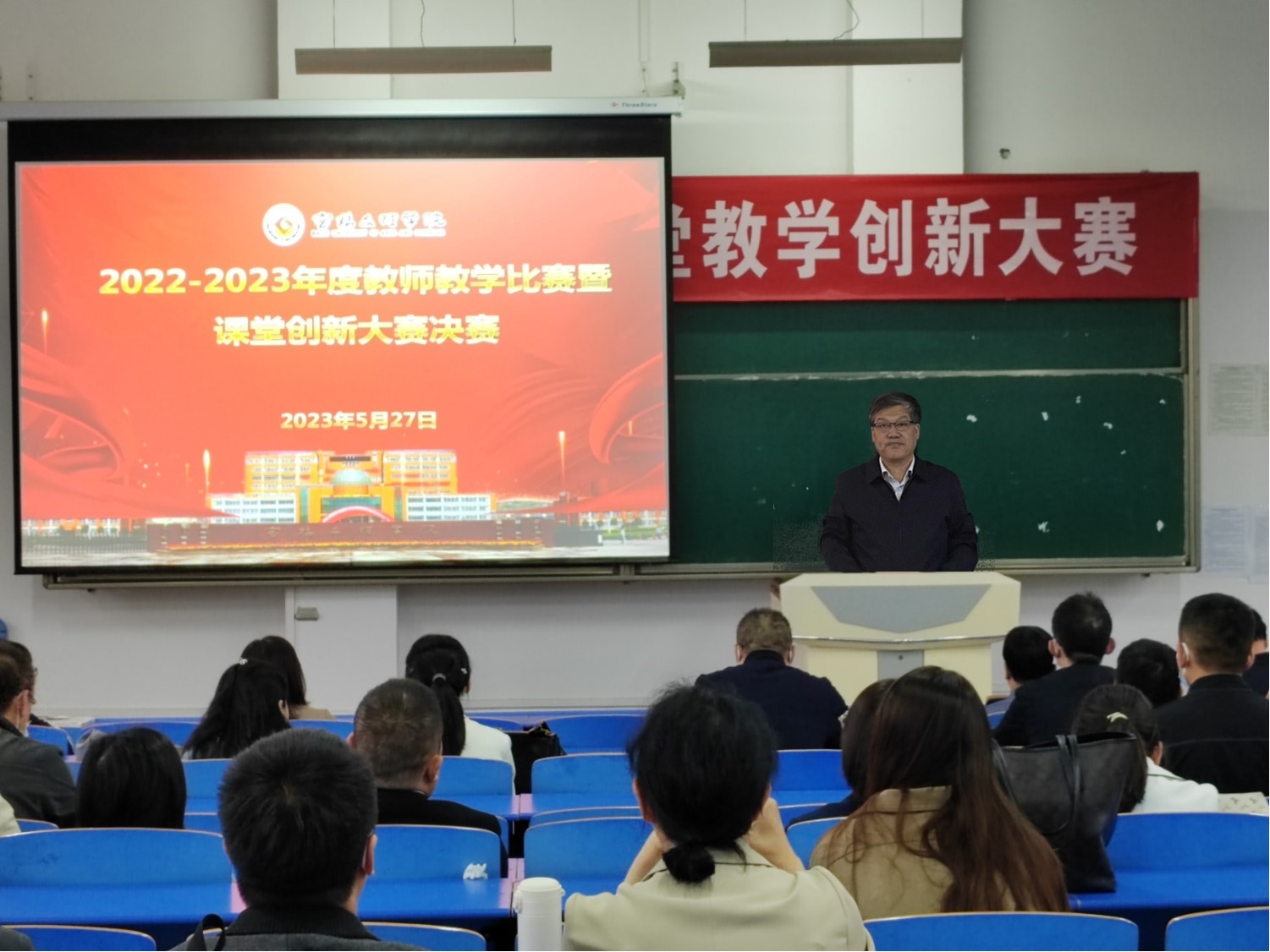 5月27日,我校在高新校区举行2022-2023年度教师教学比赛暨课堂创新大赛决赛。副校长王富平出席决赛开幕式并致辞。开幕式由教务处副处长周喜华主持。