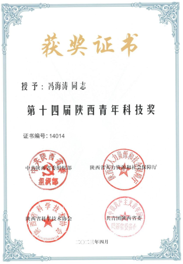 近日,中共陕西省委组织部、陕西省人力资源和社会保障厅、陕西省科学技术协会、共青团陕西省委公布了第十四届陕西青年科技奖获奖人员名单,我校化学化工学院冯海涛教授荣获第十四届陕西青年科技奖。
