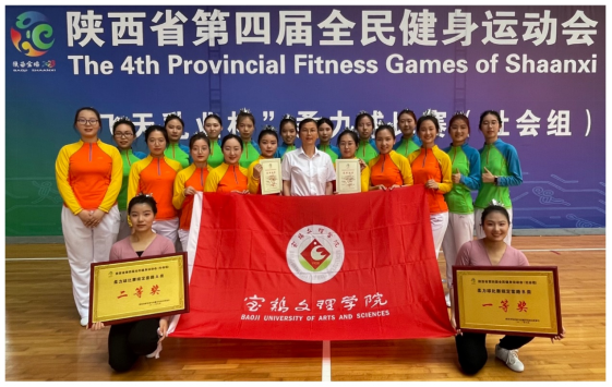 本次比赛由陕西省人民政府主办,陕西省体育局、陕西省妇女联合会、宝鸡市人民政府承办,陕西省社会体育运动发展中心、陕西省柔力球运动协会、宝鸡市体育局、千阳县人民政府协办。比赛设集体项目、双人项目、单人项目,来自西安、咸阳、宝鸡、安康等市的20支代表队共200余名运动员同台竞技。我校代表队由体育学院负责组队,院长于奎龙担任领队,王海英老师担任教练员,来自9个学院的20名队员参加了比赛。队员们在柔与力的完美结合中传承和弘扬着传统文化,在酣畅运动中收获着健康与快乐,在比赛中磨砺了心智与技能,赛出了风格与水平,以矫健的身姿和精湛的技艺赢得了参赛队伍和在场裁判的高度赞誉,展现了文理学子的青春活力与独特风采。