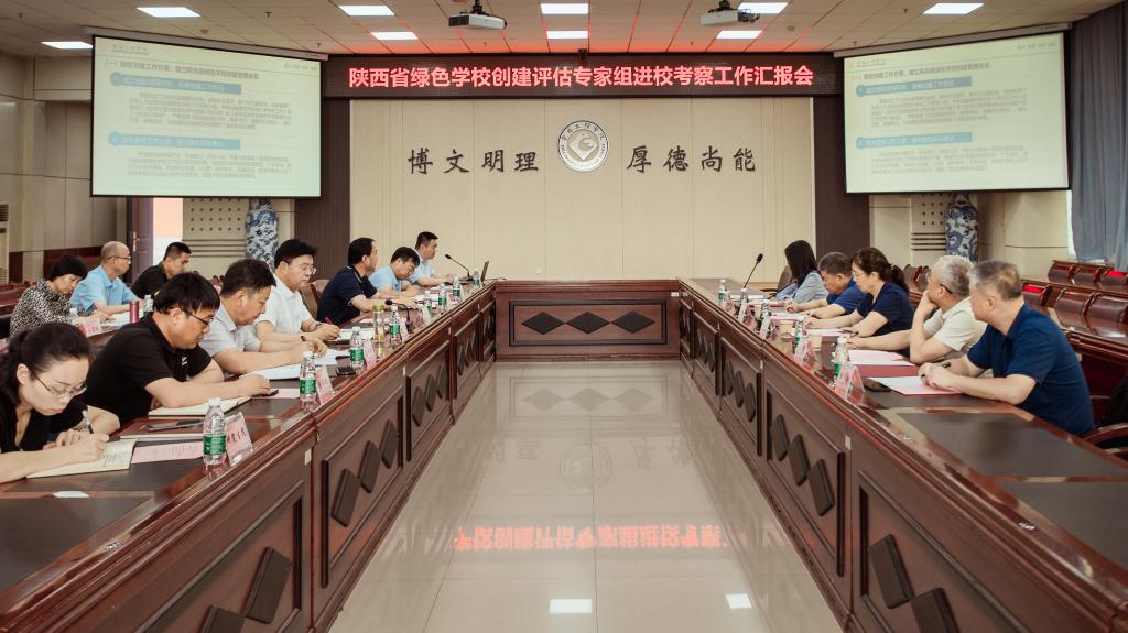6月28日,陕西省绿色学校创建评估专家组一行5人来我校开展绿色学校评估验收工作,学校在高新校区甘棠厅召开了陕西省绿色学校创建工作汇报会。会前,校党委书记赵健、校长郭霄鹏会见了专家组一行,并就学校创建陕西省绿色学校相关工作进行了交谈。副校长韩干校主持会议。