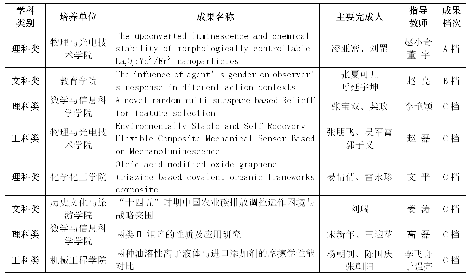 近日,陕西省教育厅、陕西省学位委员会公布了陕西省第七届研究生创新成果展高质量成果名单,我校获得高质量成果A档1项、B档1项、C档6项,在本届研究生创新成果展中取得佳绩,展现了我校研究生的科研实力和创新能力。