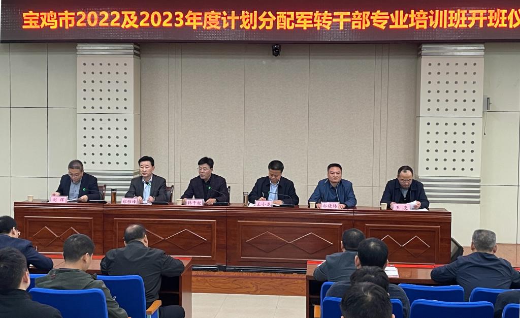 11月2日上午,我校承办的宝鸡市2022、2023年度计划分配军转干部专业培训在高新校区木铎厅开班。校党委副书记韩干校、宝鸡市委组织部副部长王小龙出席开班式,开班式由市退役军人事务局局长郑雅峰主持。