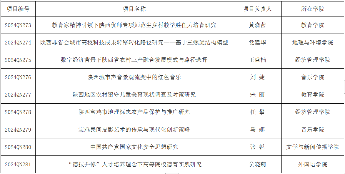 近日,陕西省社会科学界联合会公布了2024年度陕西省哲学社会科学研究专项青年项目立项名单,我校获批9项,项目经费采取后期资助方式,项目结项后每项资助0.5万元。(科研管理处 文/杨宏伟 审核/王晓玲)