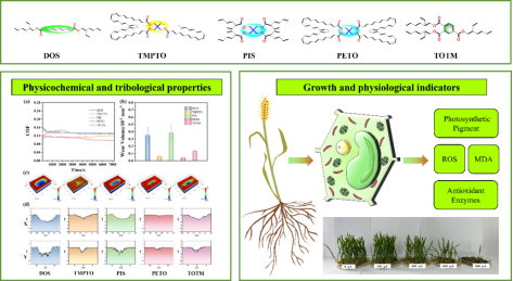 润滑油对于机械设备的正常运行起到了至关重要的作用,在运输、储存和使用过程中会因泄漏、飞溅、蒸发、失效废弃等原因进入环境,对环境产生不利影响。环境友好型润滑油开发及环境安全性评估成为新型润滑油研发的重要课题。该论文以小麦和上海青为毒性生物模型,对五种不同结构的合成酯类润滑油的理化性质、润滑性能、植物毒性及致毒机理进行了研究。探讨了润滑油分子结构与其植物毒性之间的构-效关系,并从分子层面探索了其可能的致毒机制。研究结果表明,三羟甲基丙烷三油酸酯(TMPTO)和季戊四醇油酸酯(PETO)具备较好的减摩抗磨效果和较低的植物毒性。从生化水平来看,合成酯类润滑油主要通过抑制植物细胞体内光合色素含量和酶类活性水平的方式影响植物生长。该工作为新型高性能绿色环保润滑油的研发提供了重要的理论指导。