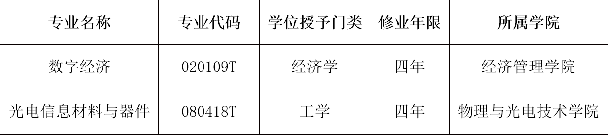 近日,教育部公布了2023年度普通高等学校本科专业备案和审批结果,我校获批新增“数字经济”“光电信息材料与器件”两个本科专业。