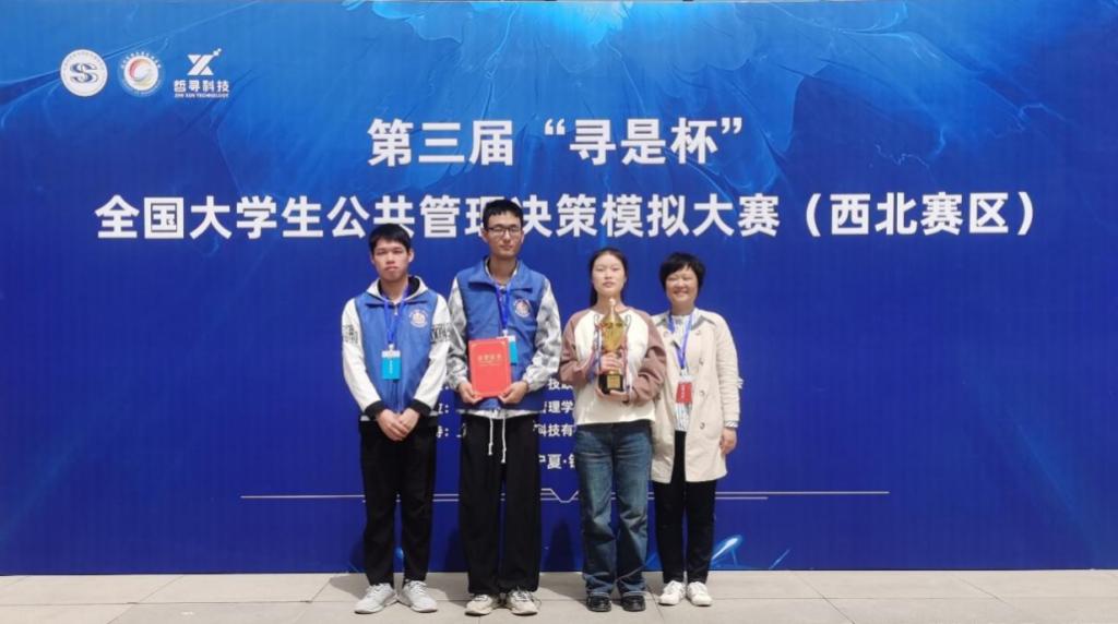 近日,第三届“寻是杯”全国大学生公共管理决策模拟大赛(西北赛区)在北方民族大学举办,我校政法学院公共管理类专业学生刘静、张梦龙和何聪华组队参赛获一等奖(指导老师:张娟、范林)。