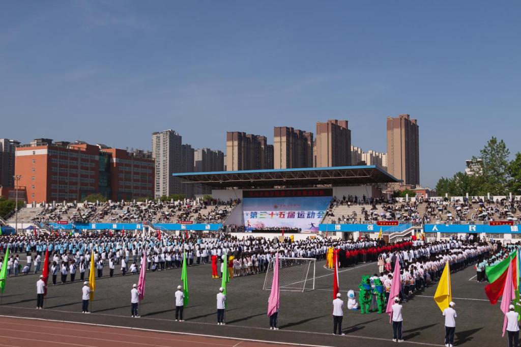 最是一年春好处,奋楫扬帆正当时。4月25日至26日,我校第35届运动会在高新校区体育场举行。校领导赵健、郭霄鹏、李景宜、沙红梅、于建伟、凡明锦出席开闭幕式。副校长、运动会组织委员会主任王富平主持开幕式。