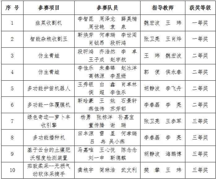 近日,第十一届全国大学生机械创新设计大赛陕西赛区组委会公布获奖名单,我校参赛作品获省级一等奖2项、二等奖4项、三等奖4项。