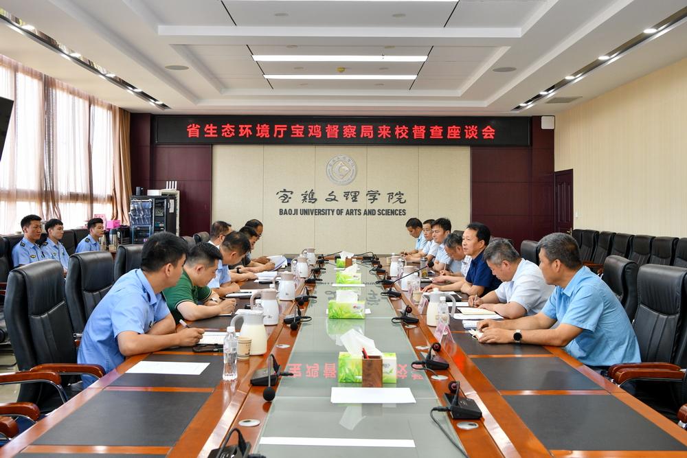 6月11日下午,省生态环境厅宝鸡督察局局长薛立新一行来校督导检查生态环保系统治理工作并进行座谈交流,副校长于建伟主持会议。