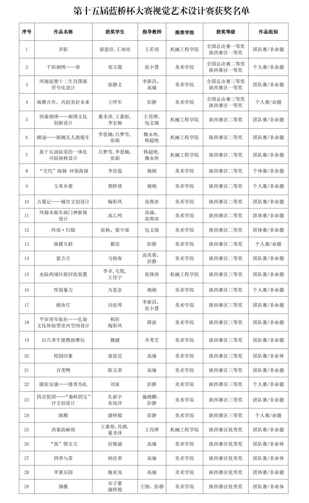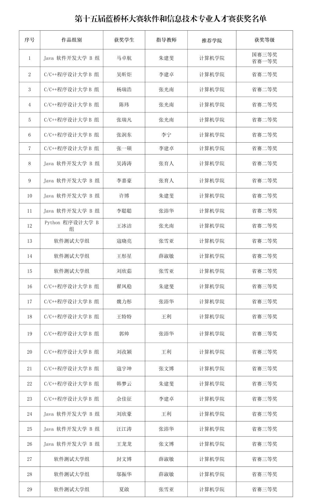 近日,第十五届蓝桥杯大赛全国总决赛成绩揭晓。我校学生分别在视觉艺术设计赛项、软件和信息技术专业人才赛项中,获得全国总决赛一等奖1项、二等奖1项、三等奖3项,省赛一等奖5项、二等奖24项、三等奖24项、优秀奖5项,比赛成绩创参加该项赛事以来最好成绩。