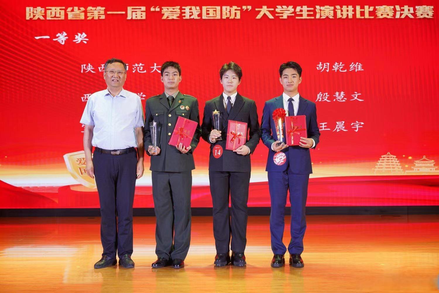 6月17日,由中共陕西省委宣传部、陕西省教育厅、陕西省军区政治工作局、共青团陕西省委主办,陕西师范大学、陕西广电融媒体集团承办的陕西省第一届“爱我国防”演讲比赛决赛在陕西师范大学长安校区隆重举行,我校文学与新闻传播学院2023级播音与主持艺术专业学生王晨宇获得一等奖。