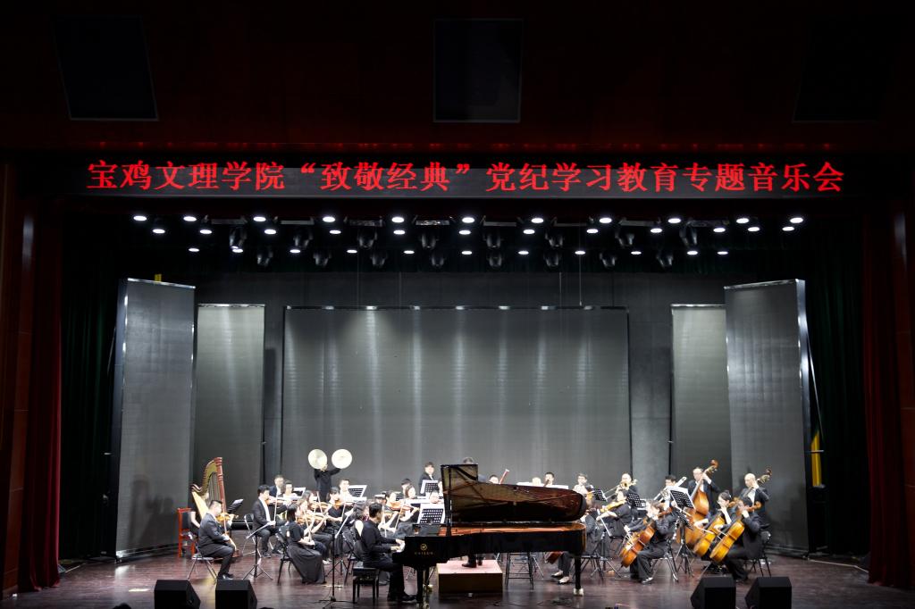 为扎实推进党纪学习教育,6月21日晚,由校纪委、党委组织部、党委宣传部、党委学生工作部、党委教师工作部、校团委、教务处主办,音乐学院承办的“致敬经典”党纪学习教育专题音乐会在博文楼报告厅举办。我校600余名师生及宝鸡市社会各界人士现场聆听了音乐会。