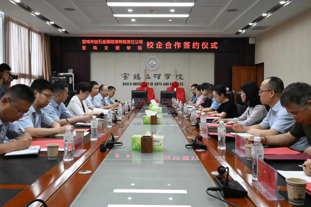 7月5日上午,我校与宝鸡市础石金属检测有限责任公司在高新校区图书馆801会议室签订校企合作战略协议。宝鸡市工业和信息化局副局长张华,中铁宝桥集团党委委员、总会计师纪劲,宝鸡市础石金属检测有限责任公司法人、执行董事武光泽,我校副校长凡明锦出席会议。机械工程学院院长王肖烨主持仪式。