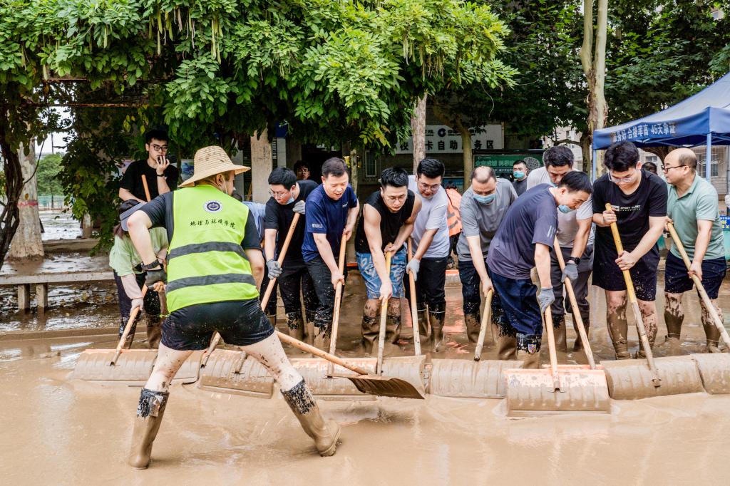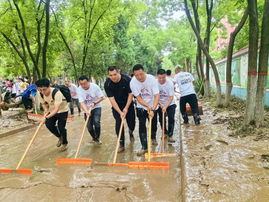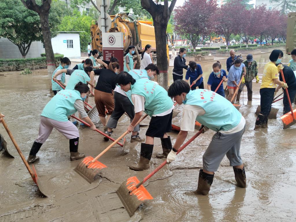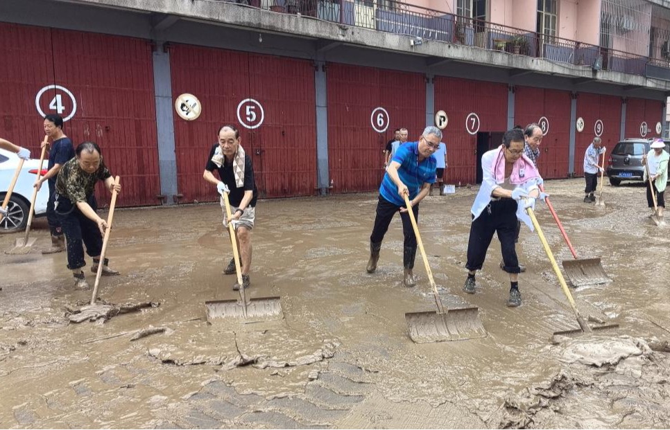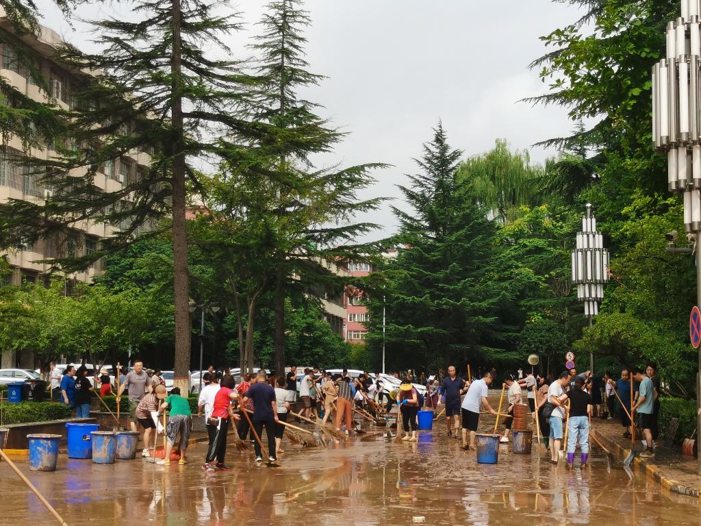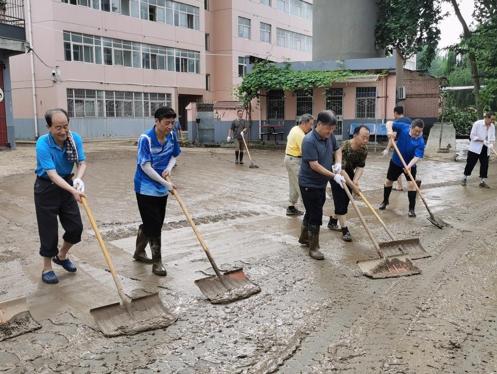 面对灾情,学校离退休老同志主动请缨组成救援小分队,每天轮流派出人员加入清淤队伍,其中年纪最大的接近八旬,他们不顾年老体弱,与年轻人一道奋战在义务劳动现场,极大调动和鼓舞了其他参加清淤任务的年轻师生。