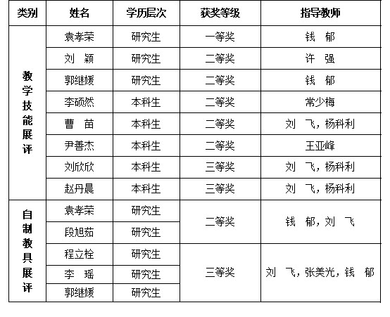 近日,第十五届“格致杯”全国物理师范生教学技能展评活动在通化师范学院落下帷幕,我校物理与光电技术学院学生获得一等奖1项,二等奖6项,三等奖3项,钱郁教授被评为优秀指导教师。