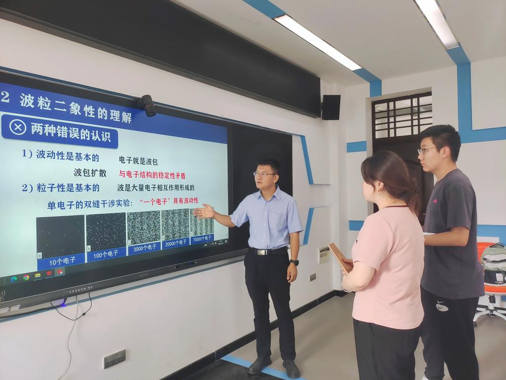 潜心教育,匠心前行。在教育教学方面,努力践行“三全育人”教学理念,忠诚党的教育事业,工作勤勤恳恳、兢兢业业,大力弘扬“为人师表,以身作则,循序善诱”的师德规范,恪守的师德底线,一心扑在教育事业上。主讲量子力学和群论等多门物理学专业核心课程,采取全程板书为主、多媒体辅助、线上线下相结合的教学手段。通过近二十年的探索和发展,形成了一套具有特色适应学生的课程讲义和板书设计,在学生和教师当中受到了一致的好评,多次课程的学生评教为满分。从教19年以来,帮助众多学生成功考取西安交通大学、四川大学、西北工业大学等高校的硕士研究生。在潜心教书的同时,积极开展教学改革研究工作,持续贯彻OBE教学理念,强调学生参与性学习,突出课程思政教育,积极开展线上线下混合教学,提高了学生自主学习的能力和创新能力,培养了学生独立思考的精神,提高了教学质量。在传授知识的同时,注重实践育人,指导学生在多个学科竞赛中获奖,2023年指导学生代表陕西省参加全国大学物理实验竞赛决赛,获得国家二等奖。
