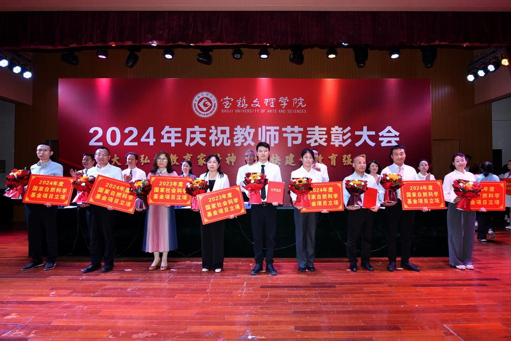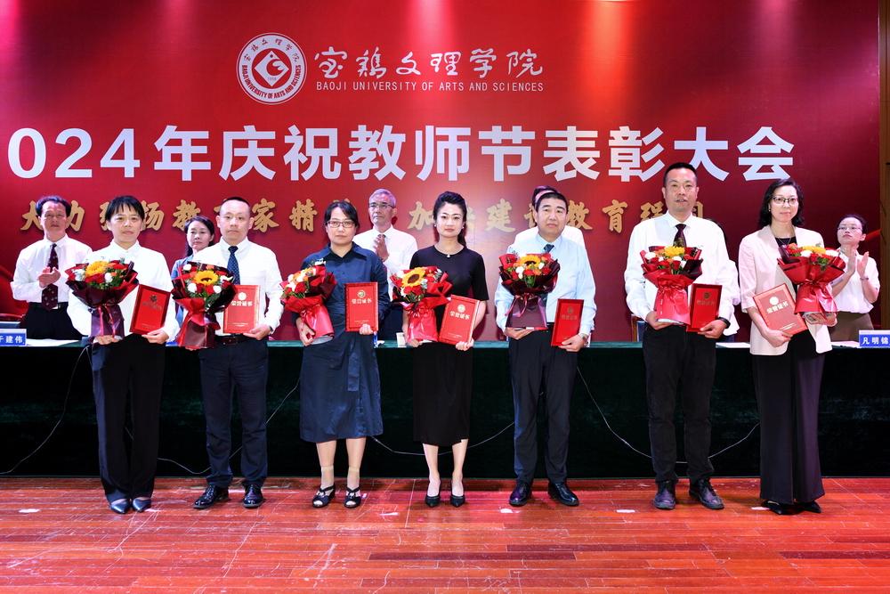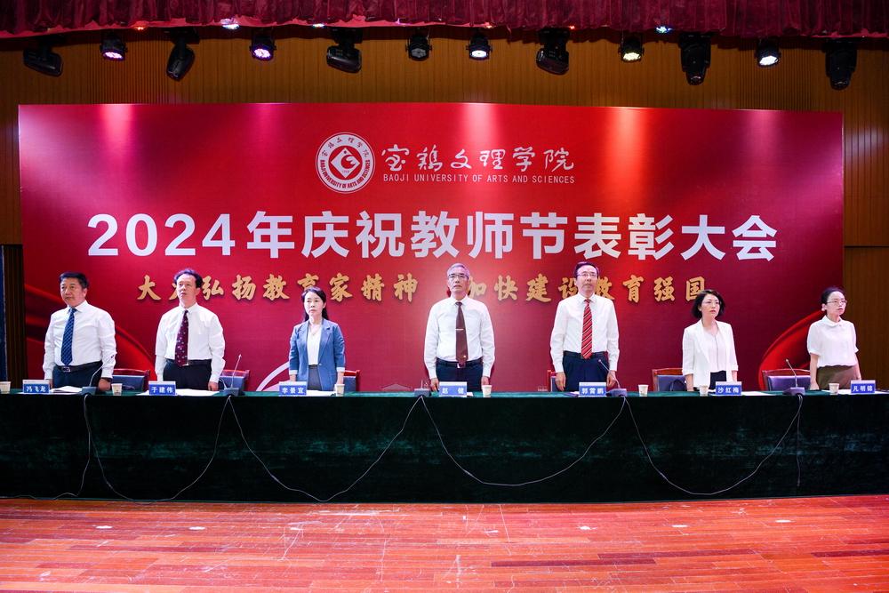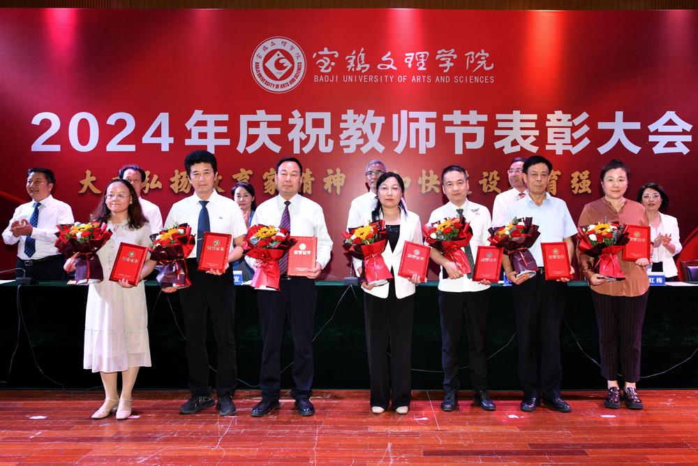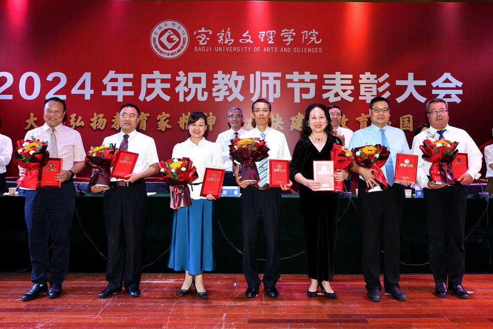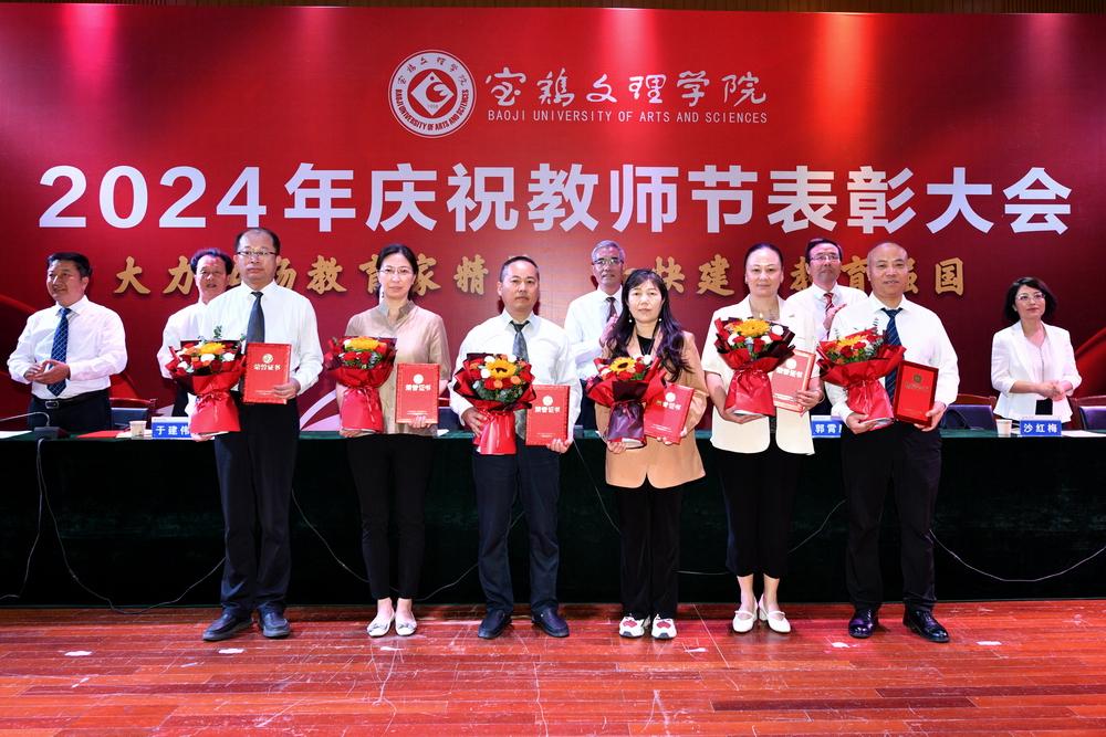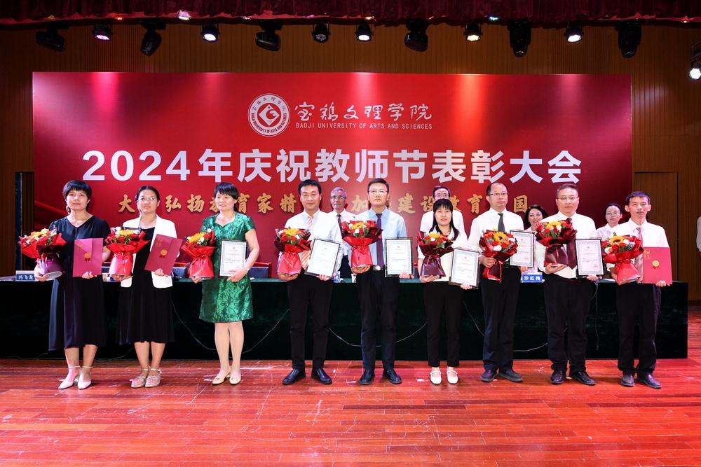 赵健代表学校党委向全体教职工致以节日问候,向所有受到表彰的教师表示祝贺,向长期以来为学校建设发展作出突出贡献的离退休老教师表示衷心感谢。他指出,强国必先强教,强教必先强师。学校66年建校历程中,涌现出很多兢兢业业、坚守平凡、无私奉献的优秀教师和教育工作者,铸就了学校今日的辉煌。今年暑期,学校遭受建校以来最为严重的自然灾害,再次展示了宝文理人平常时候看得出来、关键时刻站得出来、危急关头豁得出来的精神风貌。他强调,广大教职员工要深刻领会教育家精神的核心内涵,大力弘扬教育家精神,以更加奋发有为的精神状态投身教育强国建设实践中。一要进一步坚定理想信念。要坚持国家至上、民族至上、人民至上,厚植学生爱党、爱国、爱社会主义情怀,培养更多堪当民族复兴重任的复兴栋梁、强国先锋。二要进一步陶冶道德情操。每个教师都要以身作则地践行社会主义核心价值观,不断提升道德水准和个人修养,争做“经师”与“人师”的统一者,努力成为被社会尊重的楷模、世人效法的榜样。三要进一步涵养育人智慧。充分发挥教育引领人、温暖人、凝聚人、感召人、教化人的精神力量,让每个学生都有人生出彩的机会。四要进一步秉持躬耕态度。要提高科技创新本领,把论文写在强国建设的宏伟章程中,把实验做在民族复兴的壮美画卷上,努力成为基础研究的主力军和重大科技突破的生力军。五要进一步厚植仁爱之心。要有“捧着一颗心来,不带半根草去”的奉献精神,把对学生的爱、对学校的爱、对教育的爱、对家国的爱融为一体,用清澈的爱去润泽学生、塑造学生。