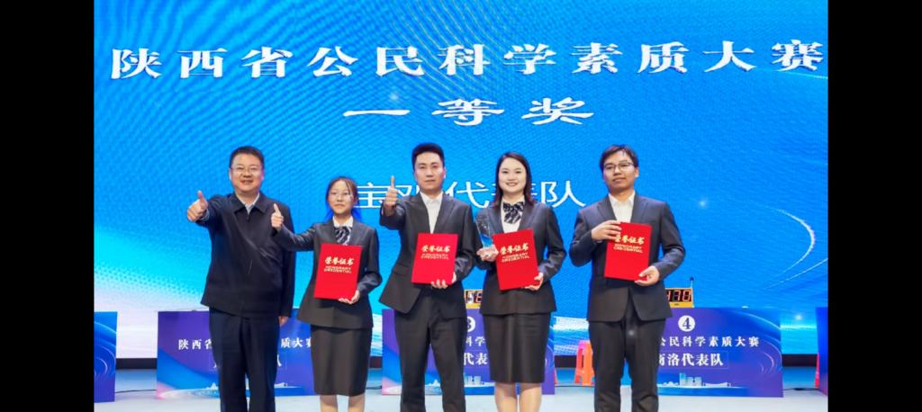 10月12日,由陕西省科协主办,安康市科协承办的陕西省公民科学素质大赛团体赛总决赛在安康职业技术学院学术报告厅举行。我校文学与新闻传播学院2022级汉语言文学专业学生李林栋、常敏,宝鸡市质量技术检验检测中心冯思远、仝蒙蒙组成的宝鸡代表队获团体赛一等奖。