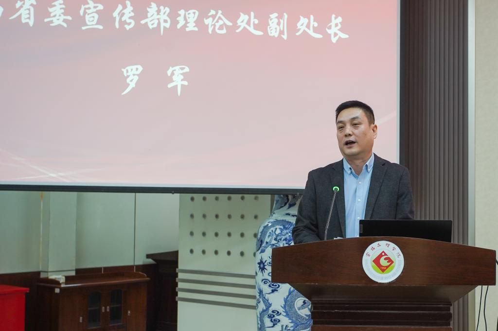 在研讨会开幕式上,郭霄鹏、省委宣传部理论处副处长罗军、全国高校思政课名师工作室(陕西师范大学)负责人张琳教授分别致辞。郭霄鹏指出,深入学习领会习近平文化思想是高校的政治任务,将习近平文化思想融入思政课教学是思政课教师的使命担当,思政课教师不仅要做习近平文化思想的模范实践者,也要做弘扬教育家精神的模范引领者。他希望与会同志紧紧围绕研讨主题深入思考、广泛交流,在推动思政课建设内涵式发展上积极探索、贡献智慧、做出示范。