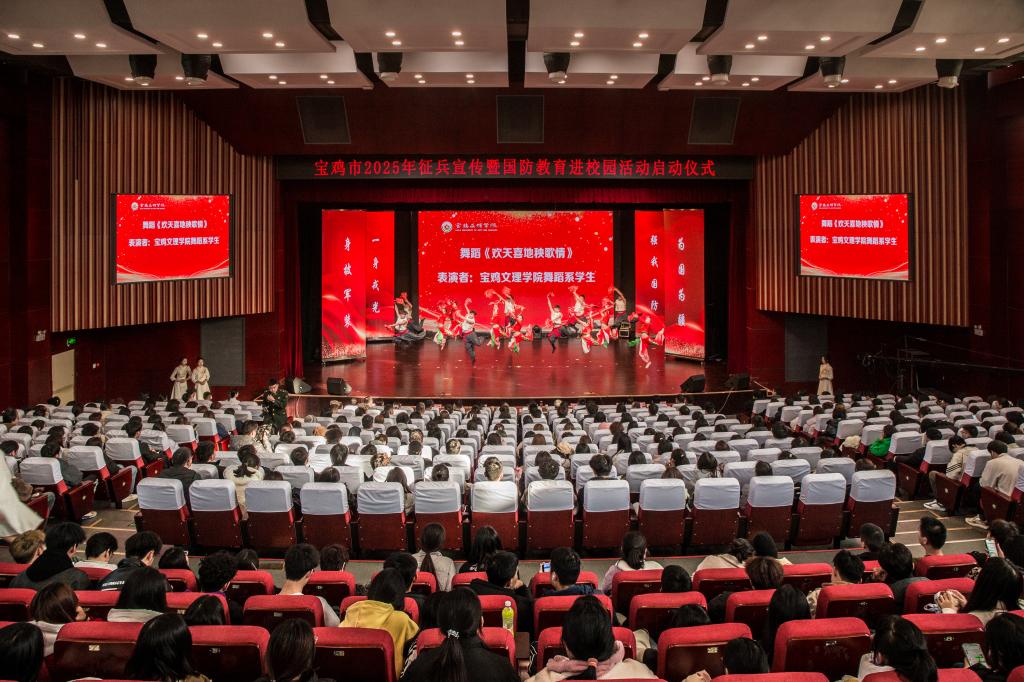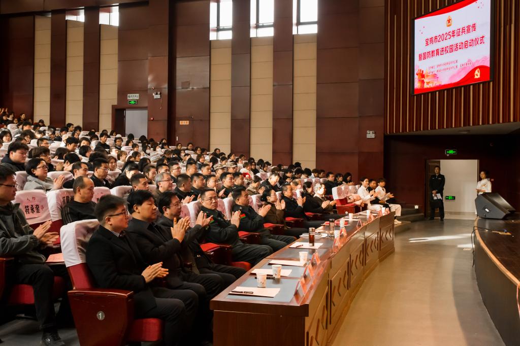 12月4日下午,宝鸡市2025年征兵宣传暨国防教育进校园活动启动仪式在我校高新校区举行。宝鸡军分区张海山出席并宣布活动启动。校党委书记赵健会见张海山并进行了交流。市征兵办公室主任胡昌武,我校副校长凡明锦,宝鸡市教育局党组书记、局长惠强,宝鸡市委宣传部二级调研员张杰,陕西机电职业技术学院党委副书记张琴,宝鸡职业技术学院党委委员、副院长王博出席活动。