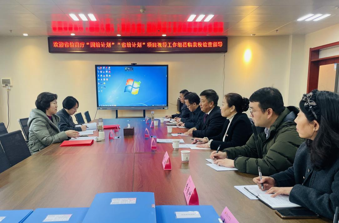12月19日下午,省教育厅“国培计划”“省培计划”第五视导组组长贾玲一行来我校检查指导工作,副校长冯飞龙出席会议,会议由继续教育学院院长王永琪主持。