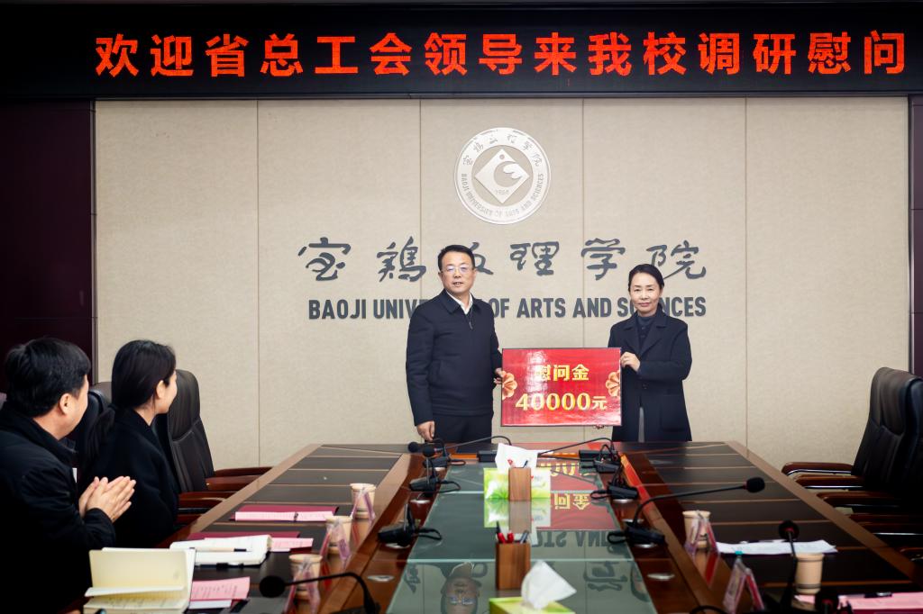 宝鸡市总工会党组成员、女工委主任温晓瑜,宝鸡市总工会教科文卫体工会主席王静,我校组织部、人事处等相关部门领导参加此次慰问调研活动。(校工会 文/杨文艳 图/张平 审核/郭宏科)
