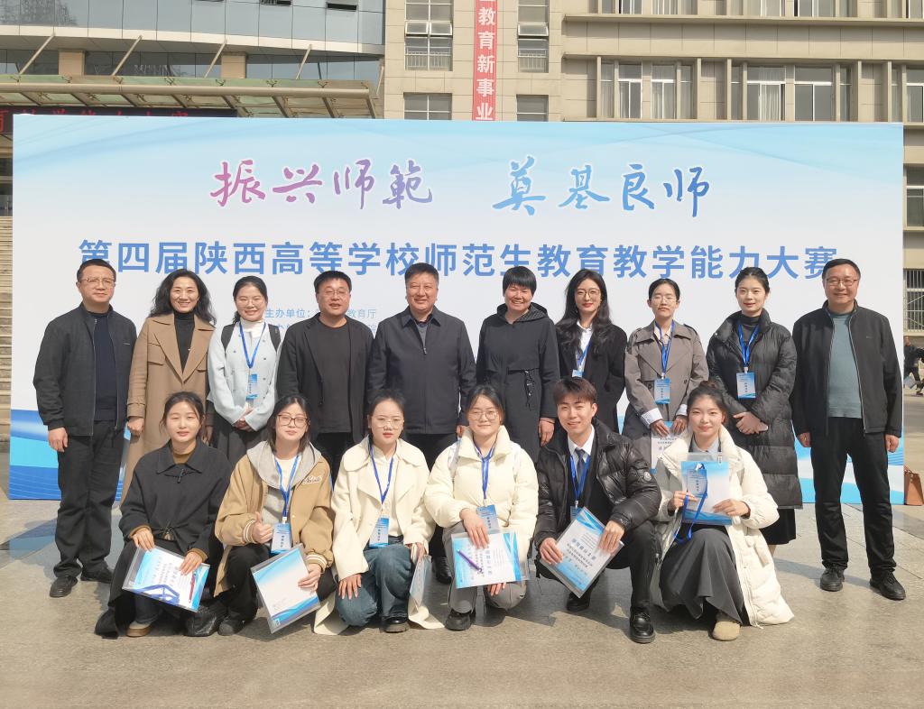 陕西省第四届高校师范生教育教学能力大赛分校级初赛、省级复赛、省级决赛三个阶段,包含即席演讲、板书测试、模拟授课三个主要环节。全省共有15所院校181名参赛学生进入省级决赛。决赛设置语文、数学、英语、政治、历史、地理、物理、化学、生物、音乐(舞蹈)、体育、美术(书法)、心理、信息技术、小学教育和学前教育16个学科组。我校10名学生经过层层选拔,最终闯入陕西省第四届高校师范生教育教学能力大赛决赛,音乐学院副院长王飞带队参赛。