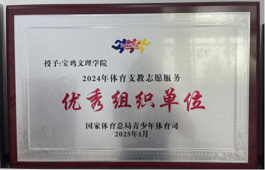 近日,国家体育总局青少年体育司授予我校“2024年体育支教志愿服务优秀组织单位”称号,以表彰在推动陕西省体育支教工作中所作出的突出贡献。