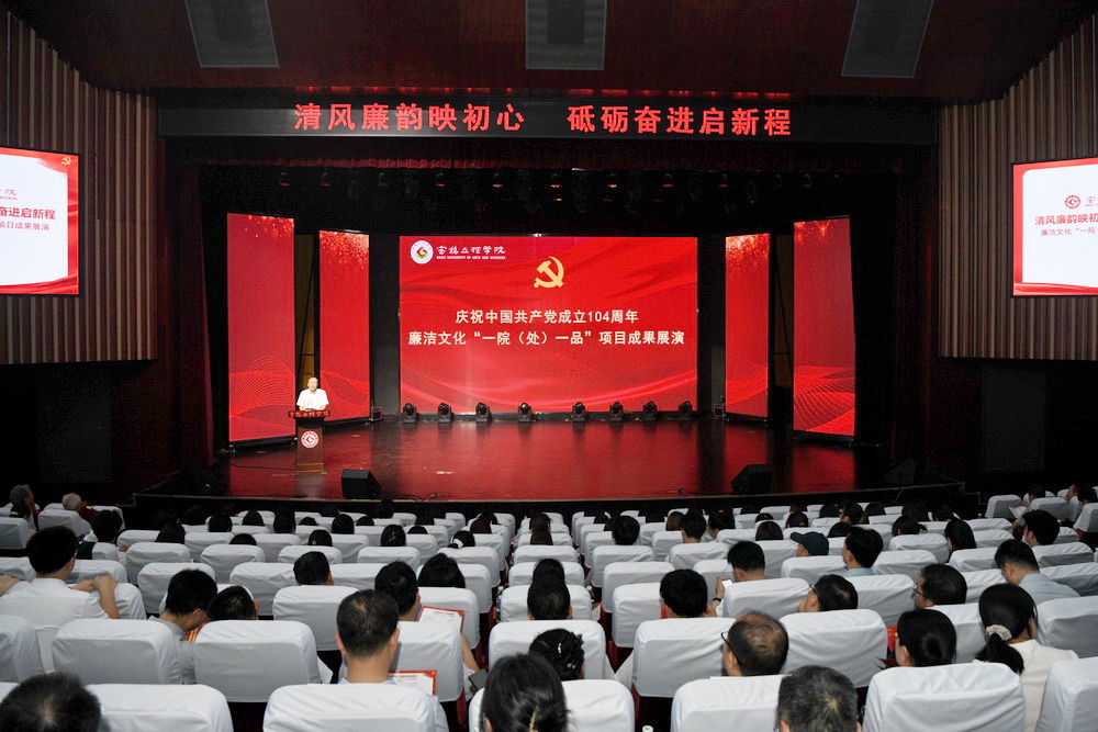 6月30日晚,我校在博文楼报告厅举办庆祝中国共产党成立104周年廉洁文化“一院(处)一品”项目成果展演。校党委书记郭霄鹏出席并讲话。校领导、师生代表等600余人共同欣赏这场融艺术性、教育性于一体的廉洁文化盛宴。