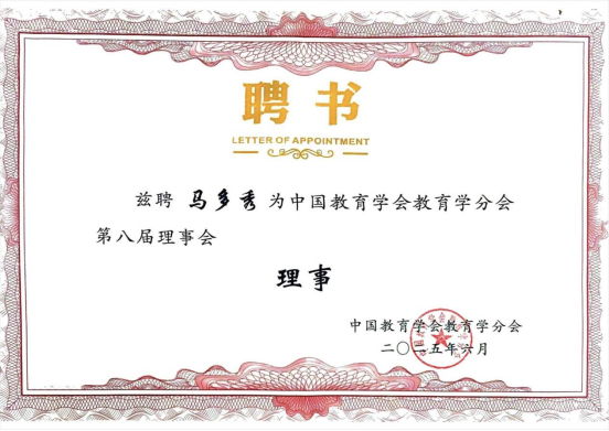 近日,中国教育学会教育学分会第八届理事会成立大会暨“教育强国进程中教育学的使命”学术研讨会在河南大学郑州校区隆重召开。经大会通过,教育学院马多秀教授受聘为中国教育学会教育学分会第八届理事会理事。