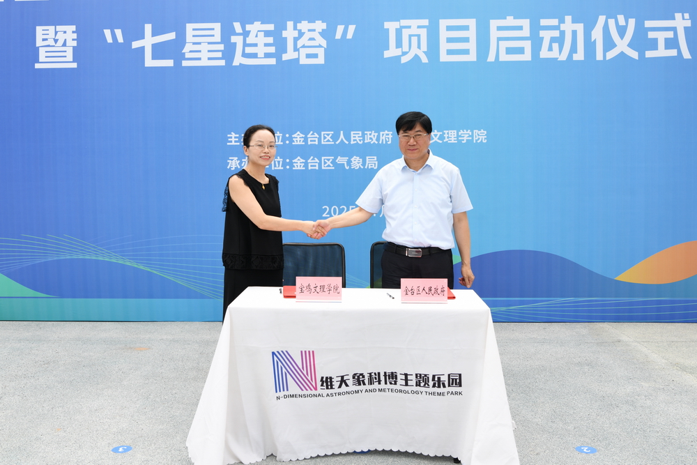 金台区副区长、中山西路街道党工委书记刘玮,金台区气象局局长李卫忠与我校地理与环境学院、外国语学院、经济管理学院等签订《N维天象科博主题乐园整体规划与设计》《N维天象科博主题乐园多语种宣传推广项目》《“星穹奇遇”情感化IP品牌系统研发与构建》《N维天象科博主题乐园争取政府项目可行性研究报告编制》等4个横向项目合同协议书,合同金额共计110万元。我校其余16个二级学院策划设计的29个合作项目协议正在磋商中。